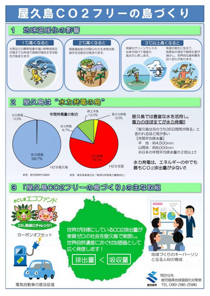 - 県民・事業者・行政が一体となり、地球環境の保全のための具体的な実践活動を展開する「地球環境を守るかごしま県民運動」の実施