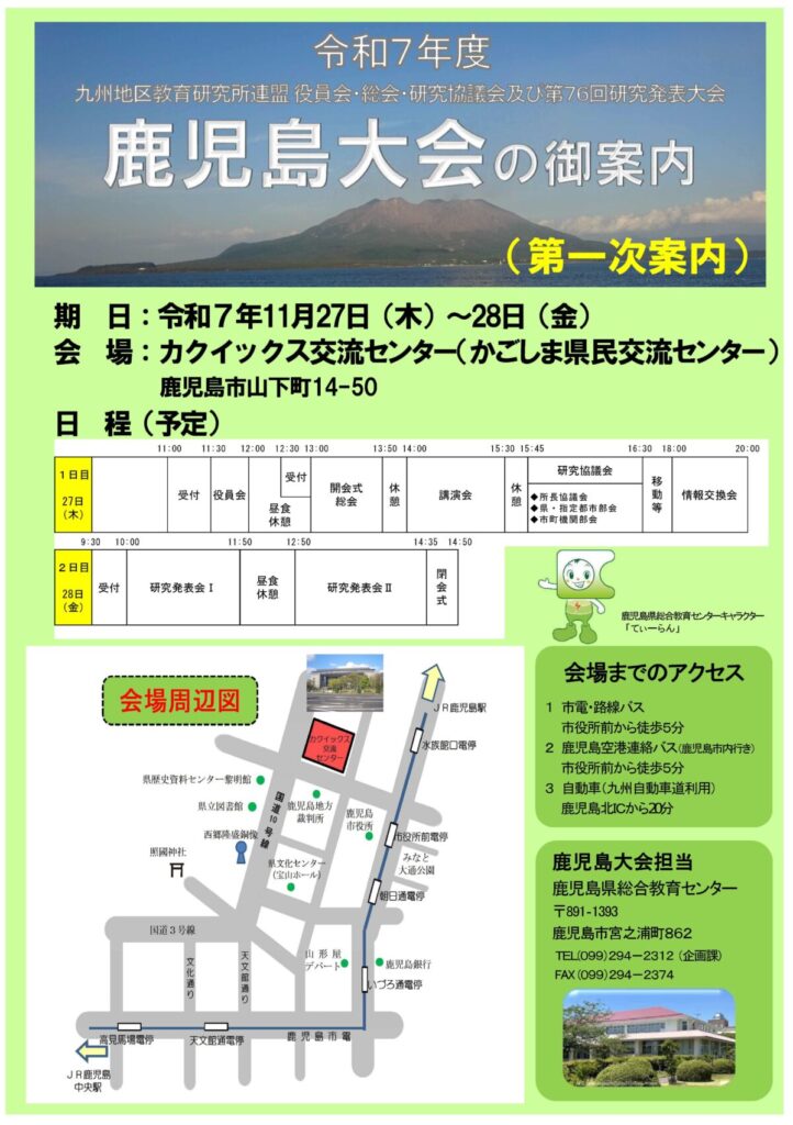 令和7年11月に本県で開催される「九州地区教育研究所連盟研究発表大会」の準備に注力しています。本県が主催を担うのは8年ぶりとなります。九州各県の教育センターの職員が集う機会に向け、プログラム編成、資料作成、関係機関との連絡調整を行い、鹿児島らしいおもてなしができるよう準備しています。また、当日参加する教職員が安心して研究成果を共有できる環境づくりに努めています。