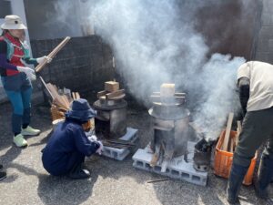 棚田米をかまどでの炊飯