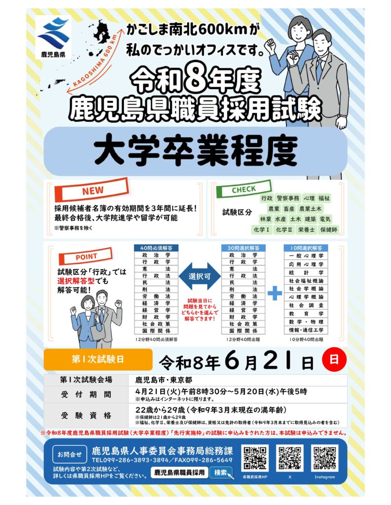 【令和8年度鹿児島県職員採用試験(大学卒業程度)のポイント】