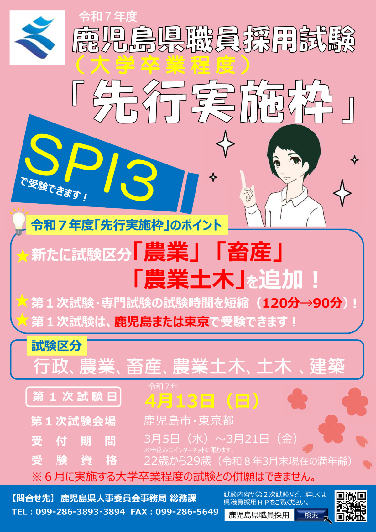 鹿児島県では、特別な公務員試験対策が必要ない「先行実施枠」の試験を実施しています。