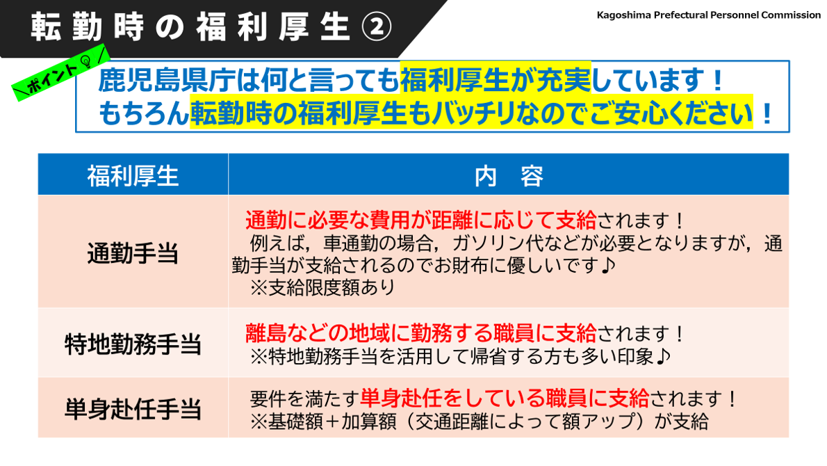 転勤時に利用できる各種制度等を説明しました。