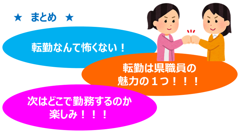 - 転勤に対する不安が少しなくなり前向きなイメージを抱くことができた。県全体を知ることができ、また、それぞれの地域の課題に携われることに魅力を感じた。